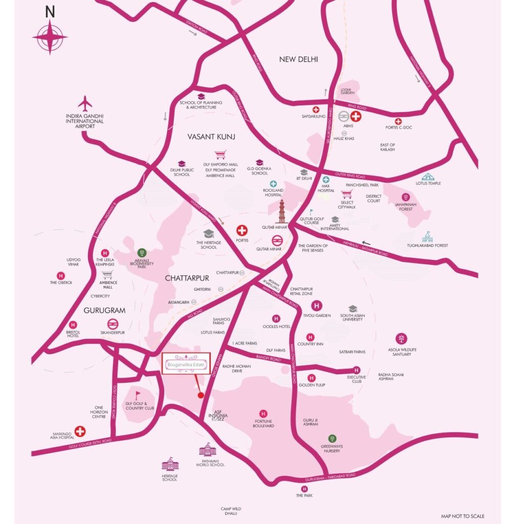 Bougainvillea Estate is located on Main Mandi-Gwal Pahari Road, offering connectivity to Gurgaon, South Delhi, and Faridabad.