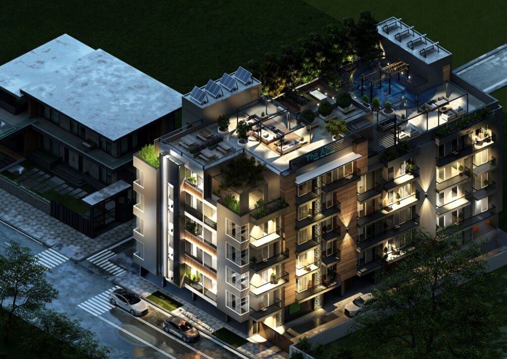 The air is a high-end low-rise 3 BHK builder floor apartment with ample ventilation, room, and contemporary conveniences to make your life more breathable and convenient. Apartments are designed to provide you with a sense of serendipity and fresh air. Cutting-edge technology is integrated to enhance your lifestyle and provide a premium experience. It's a three-sided, major road-facing development with all of the newest facilities. It was created with maximum room in mind, so you can enjoy the calm views of Gwal Pahari while feeling light and airy.